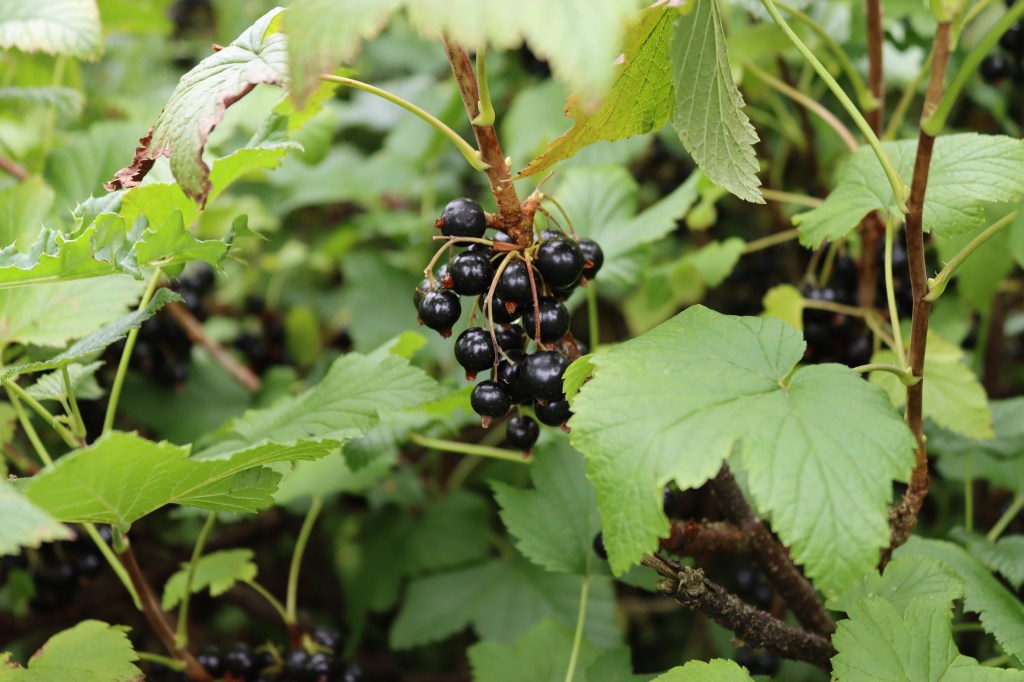 There are some hidden gems in that small jungle, at least one gooseberry bush, a couple of red currant bushes, an as yet unidentified fruit tree, I suspect it’s an apple, the photo below is some of the fruit on the blackcurrant bush that is still surrounded by weeds.